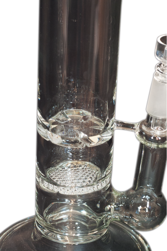Inline Perk with Honeycomb Diffuser and ice catcher providing two layers of water diffusion. Available for Flower and Concentrates. Flower bowl pictured.44mm